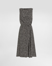 This dress is an example of timeless elegance, perfect for special occasions where the detail makes the difference. The chevron print adds a modern and sophisticated touch to the classic design. Chevron print heavy crepe dress: • Multi-colored • Boat neckline • Pleated right side bodice • Pleated skirt • Sleeveless • Zip closure • Lined • Length 70 cm from the waist on size 40 IT • The model is 175 cm tall and wears size 40 IT • Made in Italy External Composition: 93% Silk, 7% Elastane