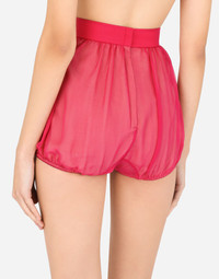 With the Joy Therapy collection, Dolce&Gabbana has decided to take a leap back into the 80s, a decade filled with allure and eclectic suggestions, with a new sensitivity towards the contemporary world. Chiffon balloon shorts: • High-waisted panties with elasticated fabric waistband • Balloon shape • Zipper fastening at the back • The model is 175 cm - 68.9 inches tall and wears a size IT 40 • Made in Italy Care And Details External composition: 100% Silk