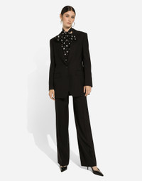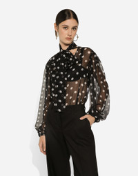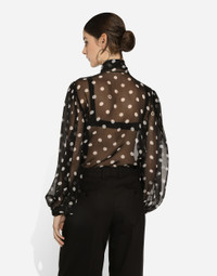 The FW24/25 Mambo Collection is rewriting the rules of Italian elegance, merging the sophisticated style of the 1940s and 1950s with the iconography of American pin-ups. The unmistakable polka-dot motif takes center stage, coming in a variety of shapes and sizes and adorning tulle, charmeuse, twill, silk and poplin, giving life to looks distinguished by black and white accessories and details. An homage to the beauty of Italy and its traditions, the distinctive details of Dolce&Gabbana’s creations. Silk chiffon pussy-bow blouse with polka-dot print: • Black and White • V-neck with pussy bow • Long sleeves with elasticated cuffs • Regular fit • Unlined • The piece measures 72 cm from the rear collar seam on a size IT 40 • The model is 175 cm tall and wears a size IT 40 • Made in Italy The difference in the print placement that you may find on this product is a feature of Dolce&Gabbana’s “Handmade” pieces. A detail that makes every garment or accessory unique and exclusive. External composition: 100% Silk