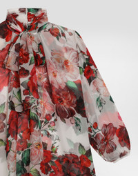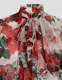 The Spring/Summer 2025 Women’s Collection is celebrating Italian beauty through bold and charismatic femininity. The 50s-inspired lingerie is the star, intermingling with fitted dresses, corsets and oversize trench coats. The iconic jackets have been updated with cropped cuts and modern inserts, while the floral prints add a romantic edge. The eveningwear shines with light fabrics and crystals, accompanied by look-defining accessories, from iconic bags to the cross earrings. Chiffon pussy-bow blouse with rose print: • Multi-colored • Gathered round neck • Long full sleeves with stretch cuffs • Loose fit • Fastened with press studs on the back • The piece measures 69 cm from the rear collar seam on a size IT 40 • The model is tall • Made in Italy The difference in the print placement that you may find on this product is a feature of Dolce&Gabbana’s “Handmade” pieces. A detail that makes every garment or accessory unique and exclusive. External composition: 100% Silk