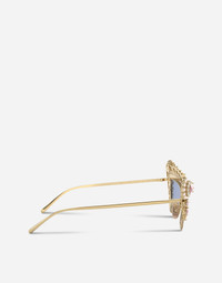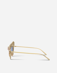 An explosion of flowers and crystals for a diva look. • Gold metal and pink enamel frame with rose crystals and pearls • Gold metal temples • Mirrored rose gold lenses • 100% UV protection • Size lens - bridge - temple: 53 - 17 - 145 mm • Fitting: Adjustable nosepads • This item comes with a special packaging • Made in Italy