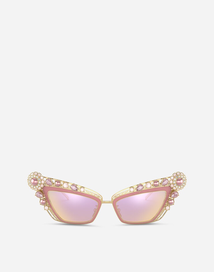 • Gold metal and pink enamel frame with rose crystals and pearls • Gold metal temples • Mirrored rose gold lenses • 100% UV protection • Size lens - bridge - temple: 53 - 17 - 145 mm • Fitting: Adjustable nosepads • This item comes with a special packaging • Made in Italy