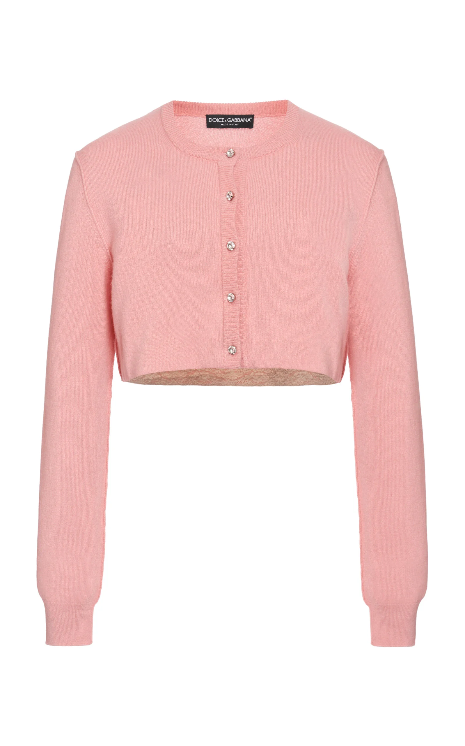 Each season, Domenico Dolce and Stefano Gabbana deliver a healthy dose of sex appeal inspired by the archives. You'll find prints that nod to the glamour and culture of Italy and figure-accentuating dresses and separates that celebrate the female form. This cropped cardigan has a relaxed shape with a slightly cinched waistline and crystal buttons in place of the classic. It’s crafted from a soft cashmere-blend yarn in a delicate shade of pink, coordinating with several pieces in this latest collection. PRODUCT DETAILS - Resort ‘26 - Button fastening - Composition: 95% cashmere, 4% cotton, 1% elastane - Dry clean - Made in Italy SIZE & FIT - Our model is wearing a size 38 - Model is 5'11” with a 31.5" bust, 23” waist, and 35” hip - Fits true to size, our fit specialist recommends taking your normal size