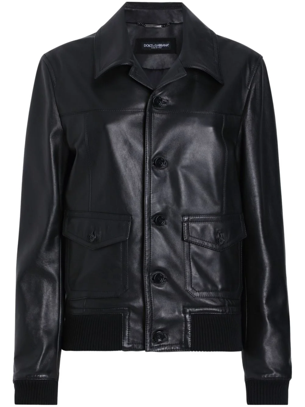 leather jacket Highlights - Black - Front button fastening - Camp collar - Two side flap pockets - Ribbed cuffs and hem Made in Italy Composition Leather 100%