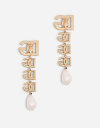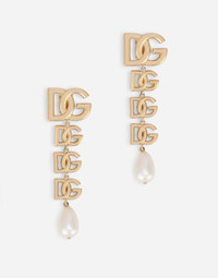 The multiple DG initials on these gold-plated brass earrings with acrylic glass pearl pendants will add some character to all your looks: • Clip fastening • Nickel-free and hypoallergenic materials • Engraved logo • Made in Italy Care And Details External composition: 80% Nickel-free Brass 20% Acrylic glass