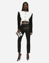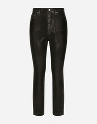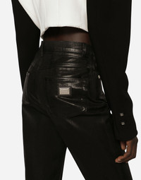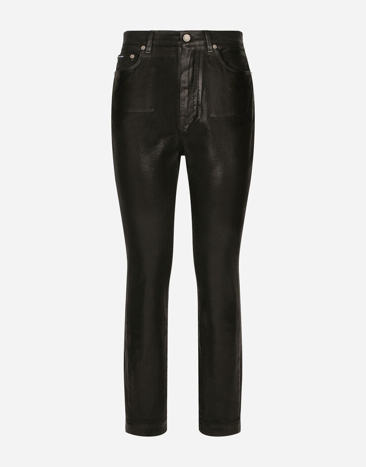 These foiled jeans feature a skinny leg and a high waist and will be perfect for a contemporary, glamorous look: • High-waisted • 5 pockets • Branded metal and leather plate • Branded label on the coin pocket • Inner leg: 73 cm • Hem: 12.7 cm • Zipper and branded metal button fastening • The model is 175 cm tall and wears a size IT 40 • Made in Italy Care And Details External composition: 98% Cotton 2% Spandex