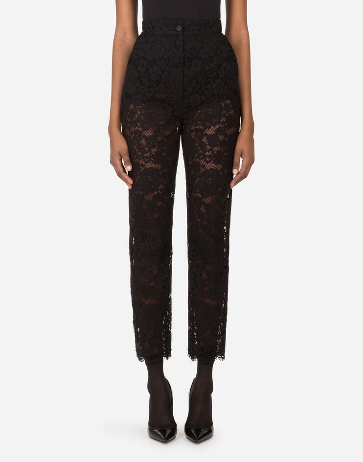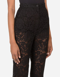 Tradition and modernity have always represented the very essence of Dolce&Gabbana’s signature aesthetic. The tailored lines of these Nero Sicilia black pants in cordonetto lace are sure to enhance all your sensual beauty: • High-waisted • Slant pockets • Scalloped hems • Inner leg: 74 cm - 29.1 inches • Hem: 17 cm - 6.7 inches • Inner shorts • Unlined • Zipper and press-stud button fastenings • The model is 175 cm - 68.9 inches tall and wears a size IT 40 • Made in Italy Care And Details External composition: 51% Cotton 41% Viscose 8% Polyamide Internal composition: 67% Silk 30% Polyamide 3% Spandex