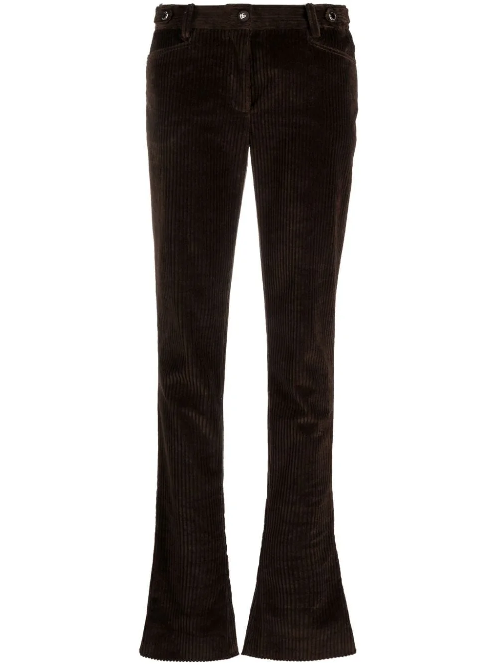 corduroy flared trousers Highlights - Brown - Stretch-cotton - Corduroy - Flared - Concealed fly and button fastening Made in Italy Composition Cotton 98%, Elastane 2% SIZE & FIT Model measurements Height 5 ft 11 in(1.8 m) Bust/Chest 31.49 in(80 cm) Hips 36.22 in(92 cm) Waist 25.59 in(65 cm) Measurement INSIDE LEG 35.82 in(91 cm) HIPS 40.15 in(102 cm) WAIST 32.28 in(82 cm) FittingInformation Designed for skinny fit cut offering a close fit and minimal movement Made from a midweight stretch fabric, this piece offers elasticity and flexibility when worn This piece fits true to size – take your usual size Washing instructions Dry Clean Only
