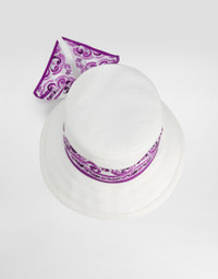 This mat hat is a versatile and refined accessory, perfect for completing your looks with elegance. Mat Hat: • White • Made in Italy External Composition: 33% Cotton, 30% Silk, 26% Viscose, 10% Linen, 1% ElastaneInternal Composition: 100% Cotton