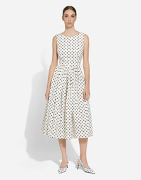 The FW24/25 Mambo Collection is rewriting the rules of Italian elegance, merging the sophisticated style of the 1940s and 1950s with the iconography of American pin-ups. The unmistakable polka-dot motif takes center stage, coming in a variety of shapes and sizes and adorning tulle, charmeuse, twill, silk and poplin, giving life to looks distinguished by black and white accessories and details. An homage to the beauty of Italy and its traditions, the distinctive details of Dolce&Gabbana’s creations. Cotton poplin calf-length circle dress with polka-dot print: • Black and white • Boat neck • Sleeveless • Partially lined in cotton • Rear zipper and hook-and-eye fastening • The piece measures 99 cm from the center back on a size IT 40 • The model is 175 cm tall and wears a size IT 40 • Made in Italy The difference in the print placement that you may find on this product is a feature of Dolce&Gabbana’s “Handmade” pieces. A detail that makes every garment or accessory unique and exclusive. External composition: 100% Cotton Internal composition: 100% Cotton