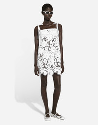 The Italian summers of the 1960s, the candid purity of white, the sophisticated elegance of the jet set of that era. The imagery of the FW24/25 Capri Collection encapsulates all this flawlessly. The pieces range from floaty poplin silhouettes or sack-style dresses and skirts, to brocade outerwear and floral-inlay fabric shirts. The iconic bags – the Logo Bag, the Sicily Bag and the Dolce Box – complement the looks, while the shoes come embroidered with designs inspired by the crystal-clear sea of Capri. Cotton minidress with floral openwork embroidery: • White • Straight neckline • Sleeveless with tie-detailed shoulder straps • Unlined • Rear zipper and hook-and-eye fastening • The piece measures 45 cm from the waist down on a size IT 40 • The model is 175 cm tall and wears a size IT 40 • Made in Italy External composition: 51% Cotton 49% Polyester