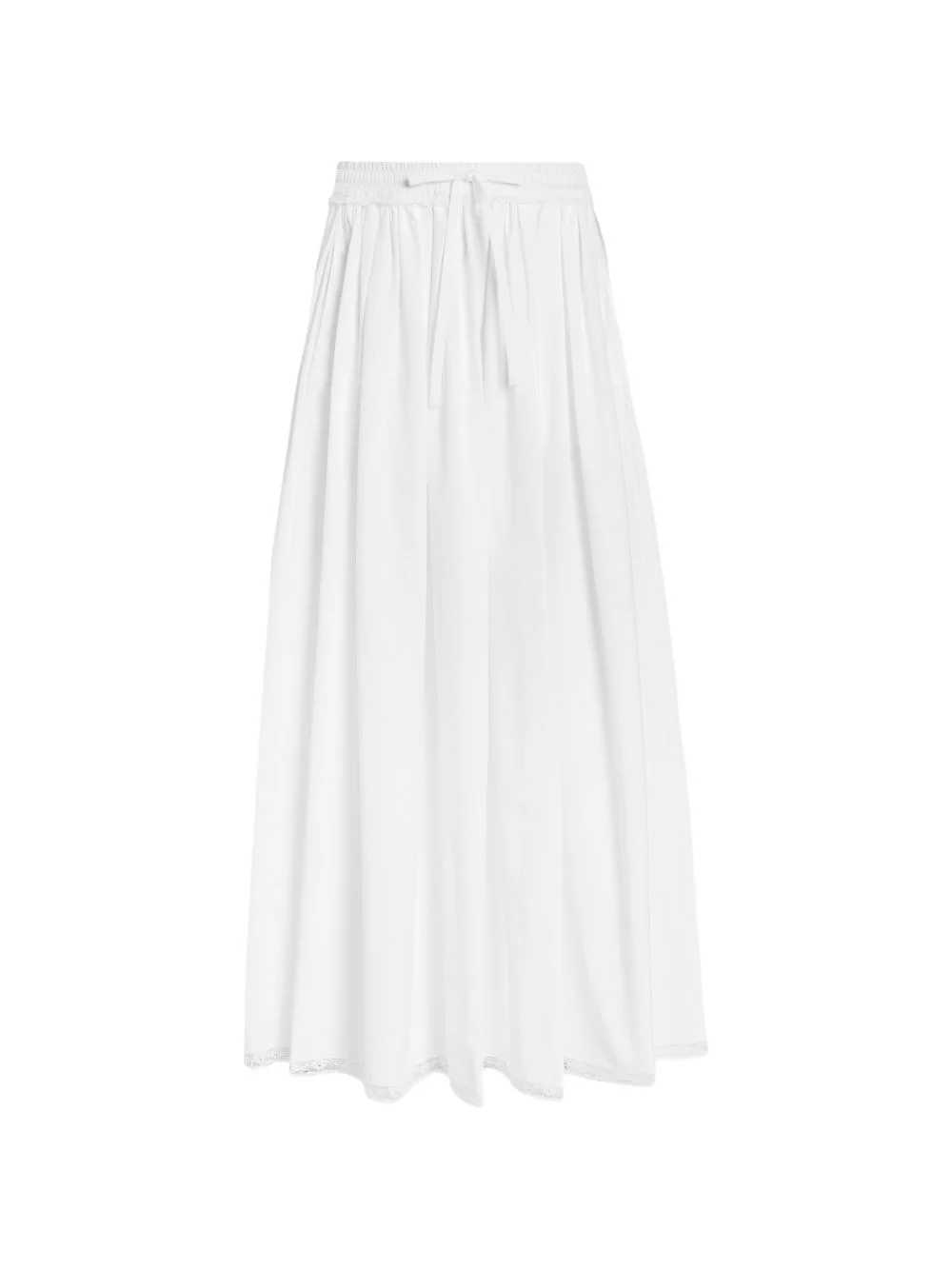 poplin skirt Highlights - Poplin skirt: - Wlhite - Loose fit - Pleats and gathered waist - Elasticated waistband with drawstring - Welt pockets - With lace band applied at the waist and hem - Zip closure at the center back - Unlined - Made in italy Made in Italy Composition Cotton 99%, Elastane 1% Washing instructions Read Manufacturer Guidelines