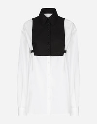 Inspired by 80s fashion photography, the Black Sicily collection masterfully blends masculine and feminine elements, pairing tailored cuts and corset details for the FW 24/25 season. A new vision of the iconic Nero Sicilia black is conveyed through contemporary and sensual looks: jackets and skirts in all-over glen plaid pair with openwork socks, while the 50s-inspired Mun shoes with Eva heel go with the houndstooth Sicily bag featuring crocodile-print leather inserts. Cotton shirt with contrasting shirt front: • White • Long sleeves • Loose fit • Button fastenings • The piece measures 80 cm from the rear collar seam on a size IT 40 • The model is 175 cm tall and wears a size IT 40 • Made in Italy External composition: 100% Cotton