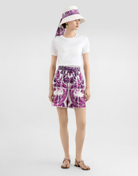 These poplin shorts with Majolica print are a versatile and vibrant piece that is perfect for adding a pop of colour and style to your summer wardrobe. Poplin shorts with Majolica print: • Multi-coloured • The model is 175 cm tall and wears size 40 IT • Made in Italy The difference in the print placement that you may find on this product is a feature of Dolce&Gabbana’s “Handmade” pieces. A detail that makes every garment or accessory unique and exclusive. External Composition: 100% Cotton