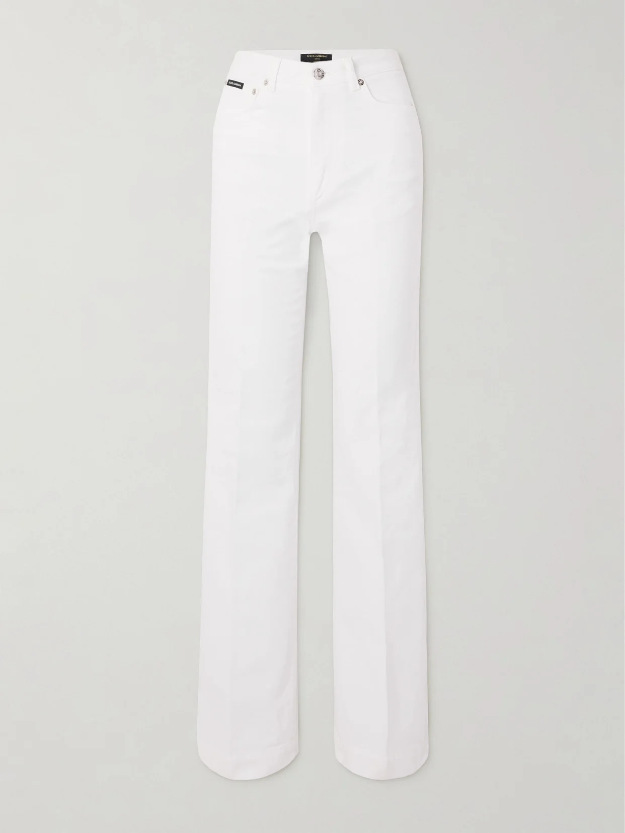 The fresh white shade of Dolce & Gabbana's pants will perfectly complement the label's vibrant tops. They're cut from cotton-twill and have retro-inspired flared legs accentuated by pressed creases. Wear yours with platform sandals.