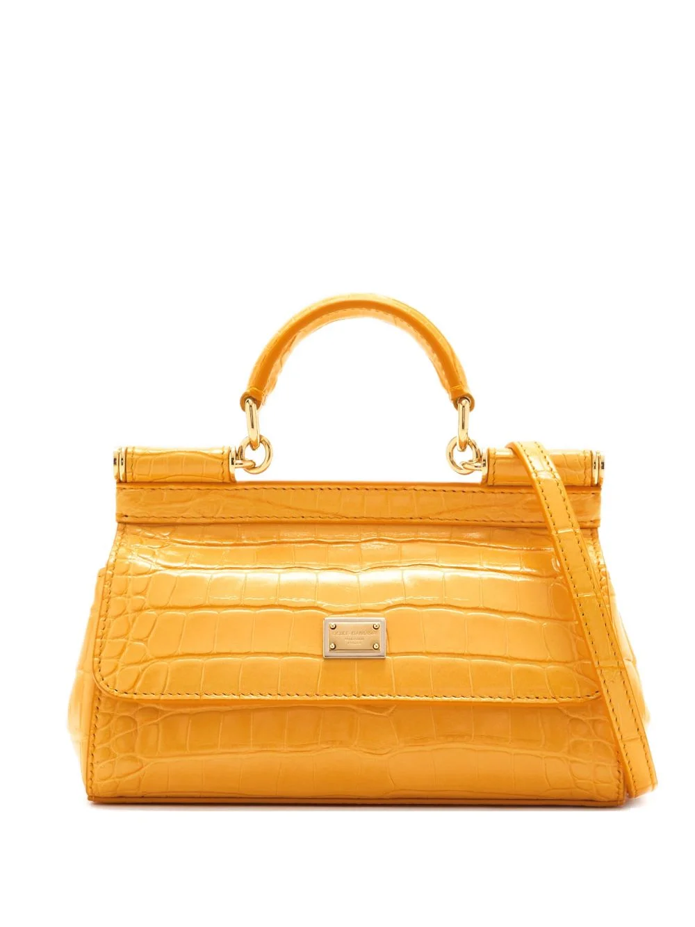 croc-effect top-handle sicily piccola tote bag Highlights - Light orange - Croc-effect - Top handle - Detachable strap - Silver-tone logo plaque - Foldover top - Press-stud fastening Made in Italy Composition Outer: Calf Leather 100%
