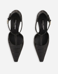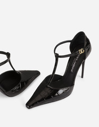 Crocodile-print calfskin T-bar pumps