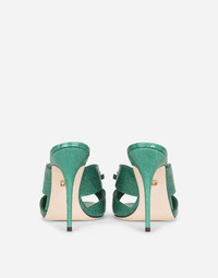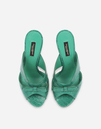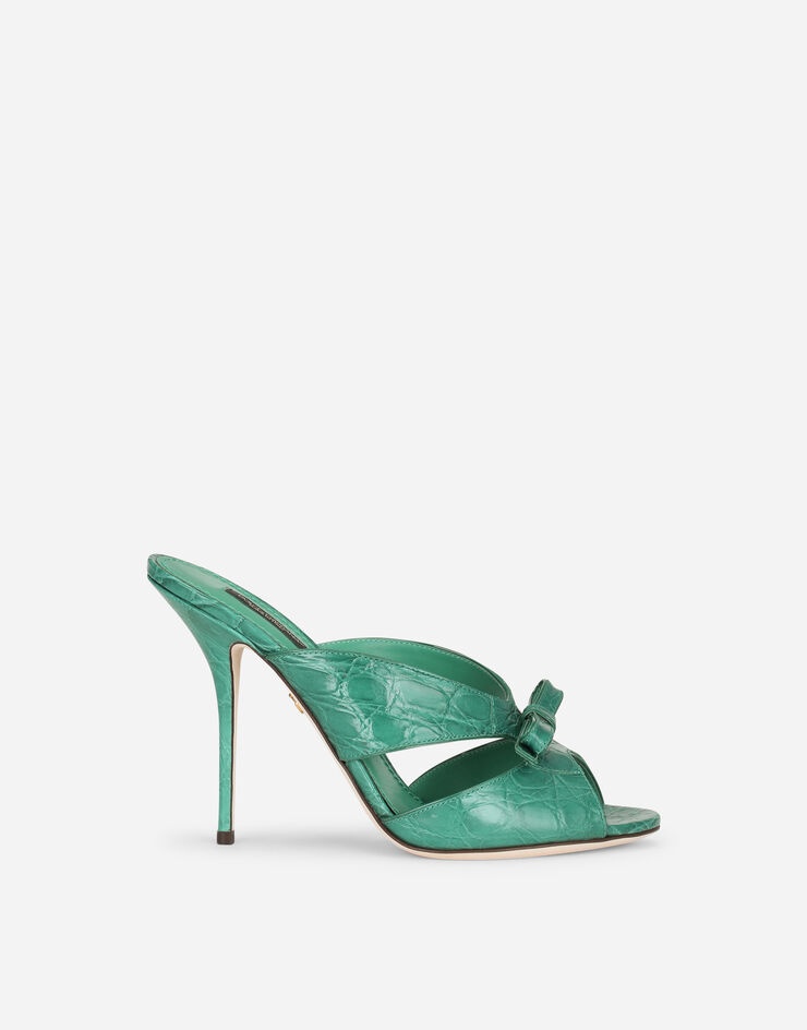 Crocodile flank leather mules with bow