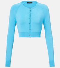 Dolce&Gabbana's cropped cardigan is exclusively designed for Mytheresa. Made from finely knit yarn, this form-fitting style features delicate eyelet detailing and a classic crewneck collar. Product Details - Material: 50% rayon, 37% nylon, 13% elastane - Care instructions: dry clean - Made in Italy - Designer color name: Light Turquoise - Item color: blue - Slim fit - Length: cropped - Sleeves: long-sleeved - Closure: buttoned front - Cuff: ribbed - Hem: ribbed - Collar: crewneck - Item number: P01061366 Size & Fit - True to size - Fitted - Stretchy fabric - Cropped - Height of model is 174cm-68.5" and wears a size IT 40