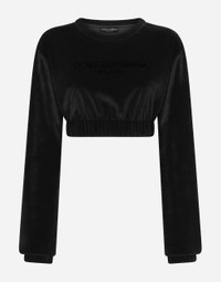 Cropped chenille sweatshirt with carpet-stitch logo embroidery: • Black • Round neck • Cropped fit • Elasticated hem and cuffs • The piece measures 35 cm from the center back on a size 40 • The model is 175 cm tall and wears a size IT 40 • Made in Italy Care And Details External composition: 70% Cotton 30% Polyester