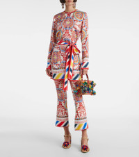Cropped printed silk-blend flared pants