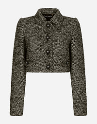 • Shirt collar • Long sleeves • Flap pockets • Leopard-print stretch satin lining • Canneté-covered button fastenings and DG logo • The piece measures 39.5 cm from the rear collar seam on a size IT 40 • The model is 175 cm tall and wears a size IT 40 • Made in Italy Care And Details External composition: 60% Wool 20% Acrylic 9% Polyester 4% Alpaca 4% Other Fibers 3% Polyamide Internal composition: 97% Polyester 3% Spandex