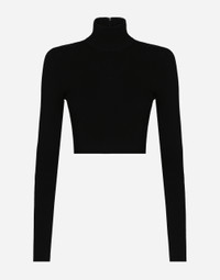 Cropped turtle-neck top: • Black • 18-gauge knit • Turtle-neck • Long sleeves • Cropped fit • Zipper on the back • The piece measures 39 cm from the shoulder seam on a size IT 40 • The model is 175 cm tall and wears a size IT 40 • Made in Italy Care And Details External composition: 83% Viscose 17% Polyester