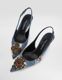Denim patchwork slingback with embroidery