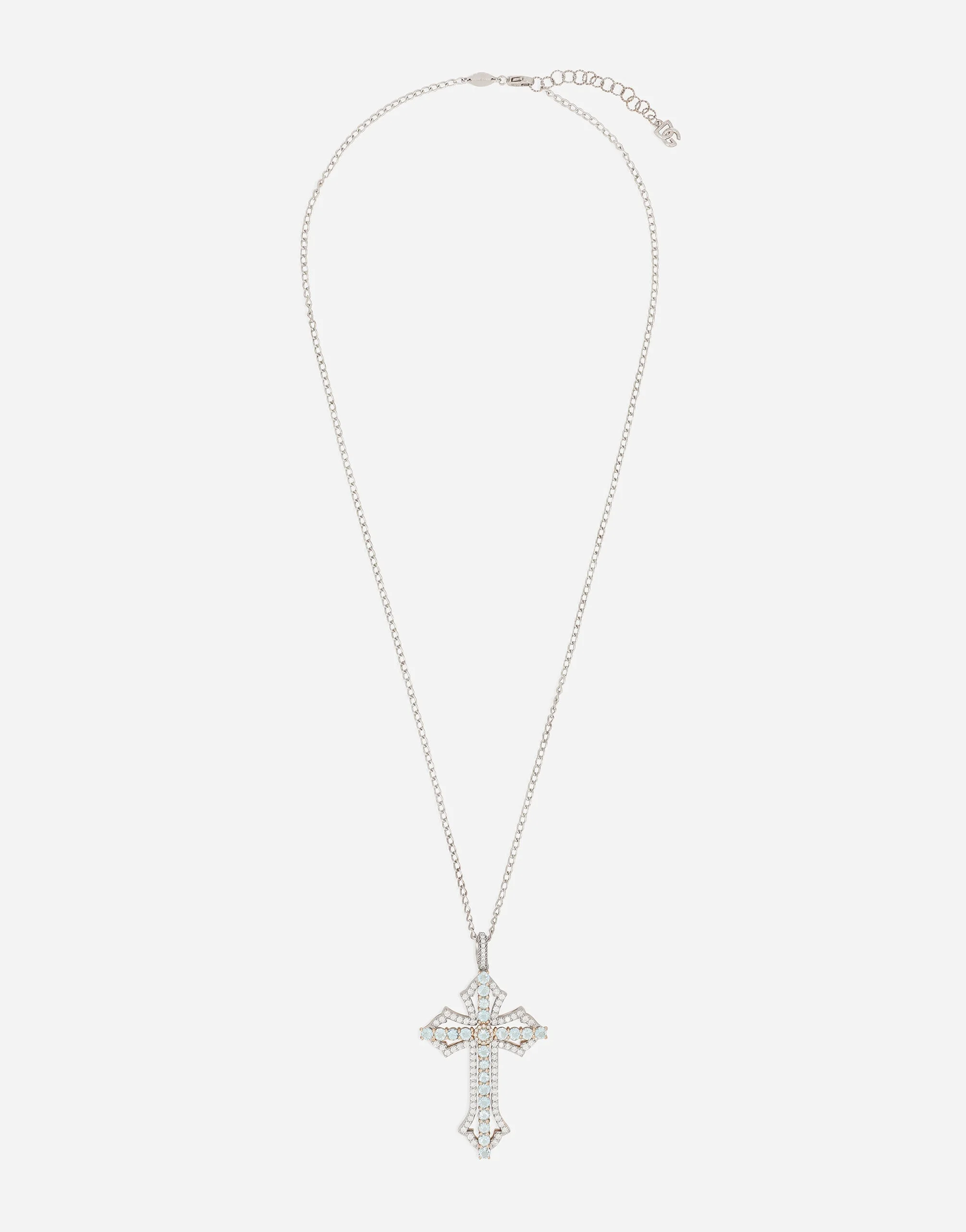 Cross Pendant 18-carat white gold, aquamarines, and diamonds
