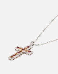 Cross Pendant 18-carat white gold with rubies and diamonds