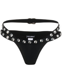 crystal-embellished bikini bottoms jet black stretch-design crystal embellishment logo plaque elasticated waistband Be mindful to try on swimwear over your own garments. Made in Italy Composition Outer: Crystal 100%, Polyamide 75%, Spandex/Elastane 25% Lining: Polyamide 80%, Spandex/Elastane 20% Washing instructions Hand Wash