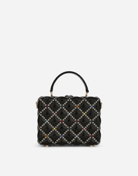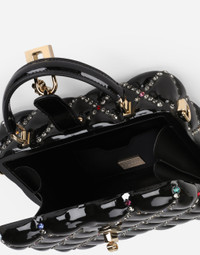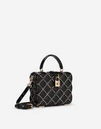 A brand icon, the Dolce Box bag embodies the brand’s craftsmanship, love and attention to detail. Fine and elegant, it comes in quilted-effect resin with multi-colored rhinestone appliqués. It features a top handle and an adjustable, detachable strap in patent leather: • Padlock fastening in light gold-plated metal with enamel flower embellishment • Top handle and adjustable, detachable strap in patent leather • Calfskin lining and inner pocket with concealed magnetic closure • Item comes with special packaging • Measurements: 14.5 x 19 x 7 cm - 5.7 x 7.5 x 2.8 inches • Made in Italy Care And Details External composition: 60% Polylactic acid 15% Brass 15% Calfskin 10% Glass Internal composition: 100% Calfskin