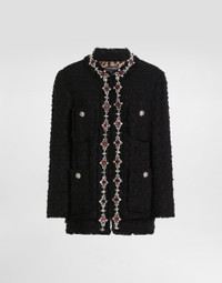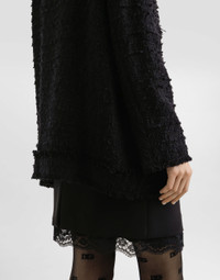 This vis a vis wool jacket represents the essence of contemporary elegance. Perfect to complete any look, it combines handcrafted details and sophisticated design for a modern and refined woman. Wool jacket with embroidered edge: • Black • Patch pockets • Frayed perimeter • Closure with 2 hooks • Lined • The model is 175 cm tall and wears size 40 IT • Made in Italy External Composition: 67% Cotton, 28% Viscose, 4% Linen, 1% Polyamide Internal Composition: 97% Polyester, 3% Elastane
