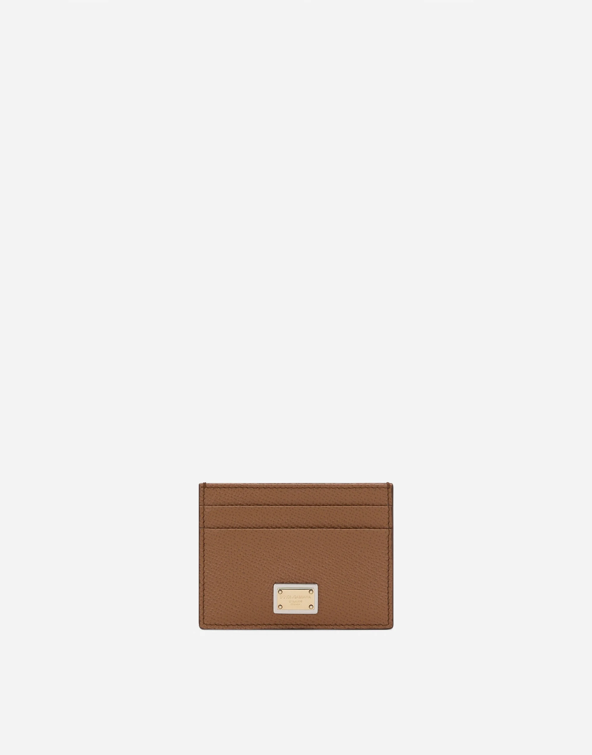 Practical and understated, this card holder comes in Dauphine calfskin. Perfect for carrying in your pocket or smaller bags, it features the branded plate with two metal plating finishes. Dauphine calfskin card holder with branded tag: • Brown • Four front card slots and one on top • Measurements: H7.5 x W10 x D0.5 cm • Made in Italy External composition: 100% Calfskin Internal composition: 100% Viscose