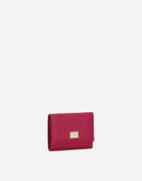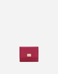 Practical and compact, this Dauphine calfskin continental wallet features the branded tag with two metal electroplated finishes. Its small size means it is perfect for the smallest bags. Dauphine calfskin French-flap wallet with branded tag: • Fuchsia • Front flap with branded tag and a hidden press-stud fastening • Four card slots • One bill compartment • Rear coin pocket with zipper • Measurements: H8.5 x W10.7 x P3 cm • Made in Italy External composition: 100% Calfskin Internal composition: 90% Calfskin 10% Viscose