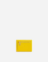Practical and compact, this Dauphine calfskin continental wallet features the branded tag with two metal electroplated finishes. Its small size means it is perfect for the smallest bags. Dauphine calfskin French-flap wallet with branded tag: • Yellow • Front flap with branded tag and a hidden press-stud fastening • Four card slots • One bill compartment • Rear coin pocket with zipper • Measurements: H8.5 x W10.7 x P3 cm • Made in Italy External composition: 100% Calfskin Internal composition: 90% Calfskin 10% Viscose