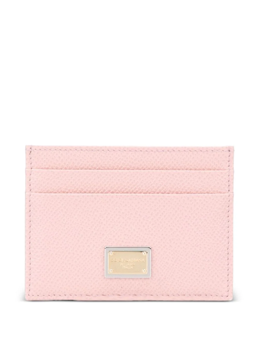 'Dauphine' cardholder Dolce & Gabbana’s luxe leather accessories are timeless classics that are a hallmark of the Italian fashion house’s artisanship and meticulous detail. Pink calf leather 'Dauphine' cardholder from Dolce & Gabbana featuring a textured leather detail, a gold-tone logo plaque, multiple card slots and an open top design. Made in Italy Composition Outer: Calf Leather 100% SIZE & FIT Measurement WIDTH 2.75 in(7 cm) LENGTH 3.93 in(10 cm)