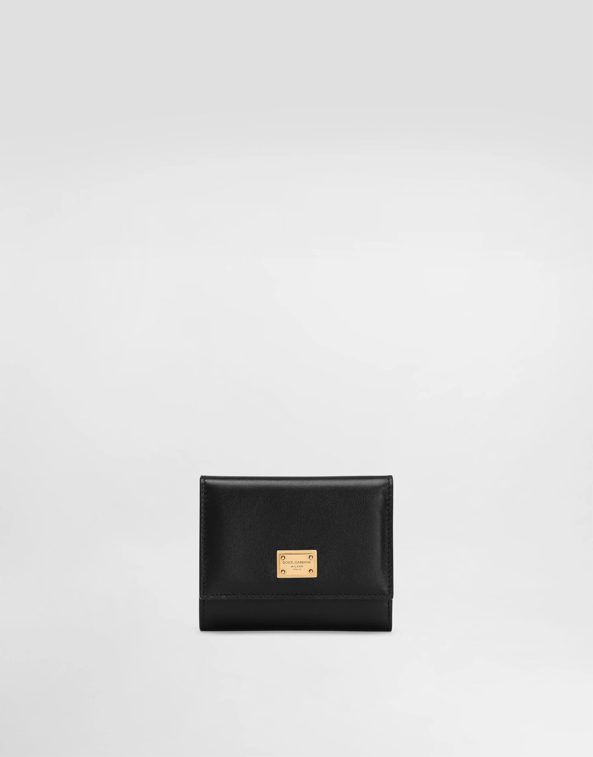 Elegant and sophisticated, this wallet in plonge calfskin is an essential accessory for the modern woman. Plonge calfskin wallet with plate: • Black • Snap button closure • Vintage brass plating • External customization with monogalvanic plate • Internal customization with logoed flag label • Item equipped with logo bag and a logoed box • Measurements: H8.5 x W10,7 x D3 cm • Made in Italy External Composition: 100% Calfskin Interna composition: 90% Calfskin, 10% Viscose This product is made with leather from tanneries certified according to environmental standards.