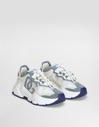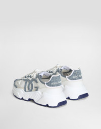 Understated and light, these nylon Daymaster sneakers feature rubberized calfskin details. Boasting the denim DG logo patch, they come with a super-flex rubber sole. Nylon Daymaster sneakers with calfskin details and the denim DG logo patch: • White and blue • Branded heel cup • Tubular laces with DG-branded drawstring lock • Calfskin footbed with branded label • Branded rubber bottom assembly • Item comes with a branded dust bag • Made in Italy External composition: 40% Cotton 40% Polyamide 10% Spandex 10% Calfskin Internal composition: 90% Lambskin 10% Goatskin