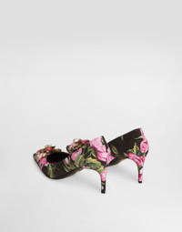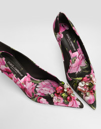 Iconic and the epitome of femininity, flowers are the stars of the new collection. Made from printed brocade, these Lollo pumps are feminine and elegant. Peony-print brocade Lollo slingbacks with gemstone embellishment: • Black and Pink • 60-mm heel • Printed kidskin insole with branded label • Branded leather sole • Item comes with a branded dust bag • Made in Italy External composition: 95% Cotton 5% Spandex Internal composition: 80% Goatskin 20% Cotton