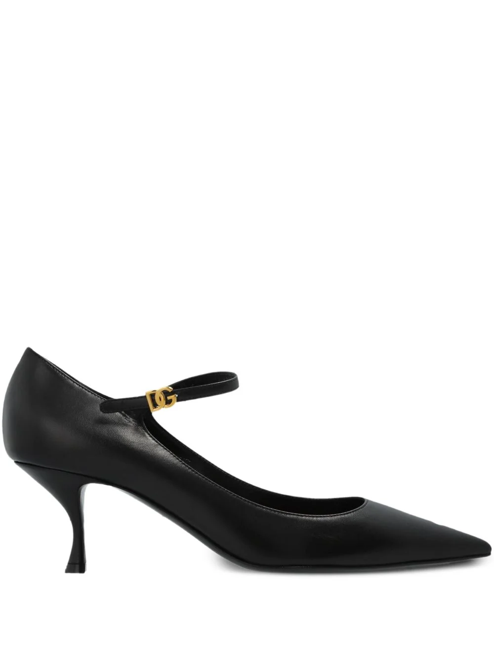 60mm pointed-toe pumps Highlights - Black - Leather - Strap detail - Logo plaque - Pointed toe - Kitten heel Made in Italy Composition Outer: Goat Skin 100% Lining: Leather 100% Sole: Leather 100% SIZE & FIT Measurement HEEL 2.36 in(6 cm)