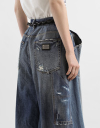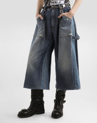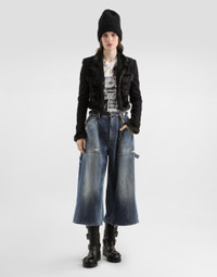 In the Fall/Winter 2025 Fashion Show Collection, shearling jackets, in fur-free versions, reveal slip dresses and create contrast' plays while denim welcomes fabric or Leo print inserts. Sweatshirts are the result of long experimentation with volumes. Evening looks become precious thanks to dresses with special embroideries and luminous touches of sequins and crystals. Sheepskin inserts also unite hats, shoes, and bags, including those with pockets. These denim bermuda shorts offer a perfect mix of comfort and style, ideal for casual and active days. Denim bermuda: • Multi-colored • The model is 175 cm tall and wears size 40 IT • Made in Italy External Composition: 100% Cotton
