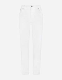 The Flowering Collection has us dreaming of faraway destinations, the most exclusive ones in the world, inviting us through the colors and the yellow rose print to take refuge in warm and unique places. Light White, lemon yellow, polka-dot accents and the various shades of leaf green for vibrant and ultra-feminine pieces where the keyword is tailoring. Every look invites us to savor and dream every moment of our free time, to discover beauty and enhance our femininity. Jeans: • White • Regular rise • 5 pockets • Branded metal and leather tag • Branded label on the coin pocket • Inner leg: 77 cm • Hem: 16.5 cm • Zipper and branded metal button fastening • The model is 175 cm tall and wears a size IT 40 • Made in Italy External composition: 98% Cotton 2% Spandex