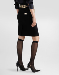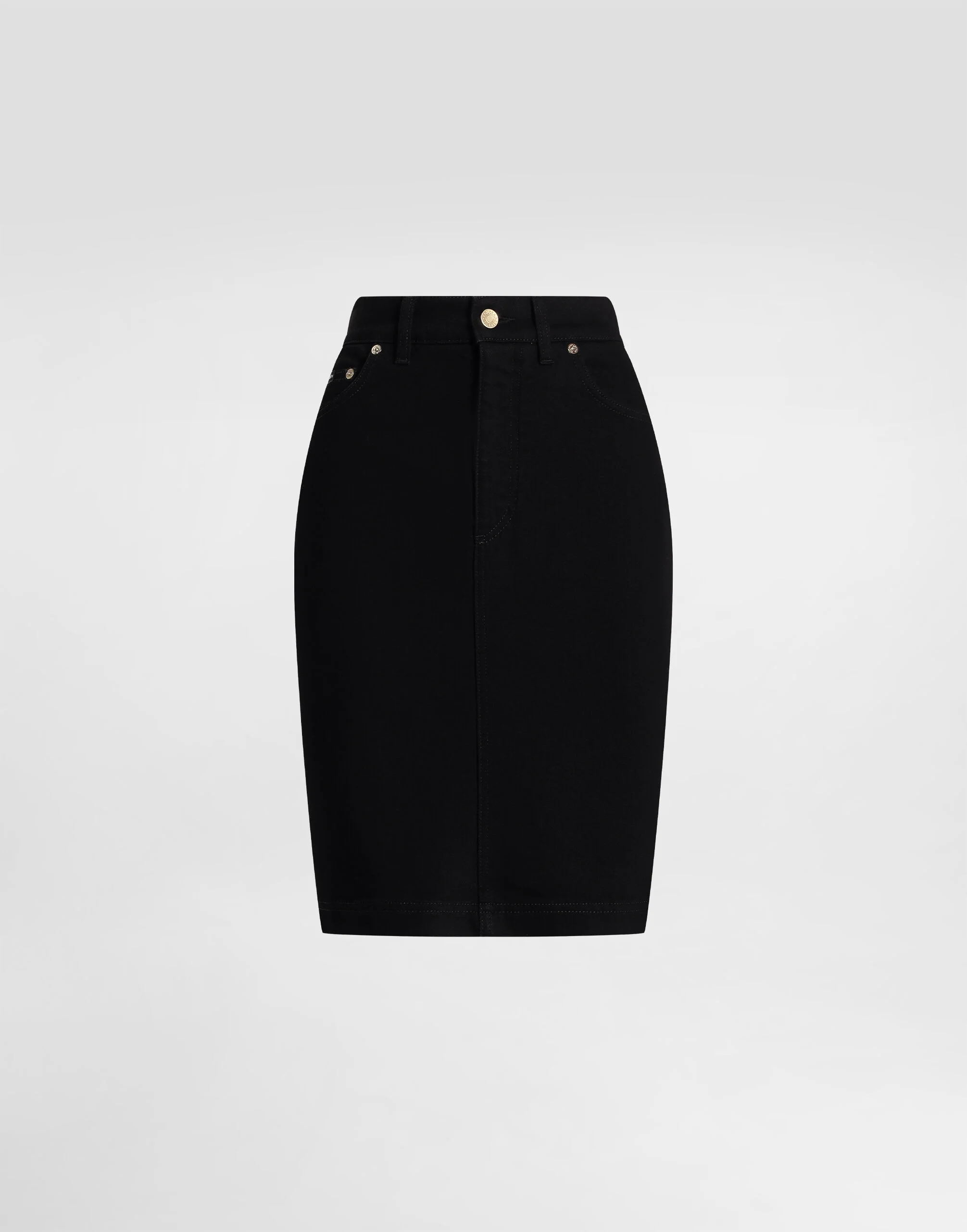 Dolce&Gabbana is conveying a new way of interpreting denim and does so by drawing inspiration from key words such as glamor and signature aesthetic, creating a collection that is perfect for every style and personality, merging femininity, modernity and originality. Cotton denim midi skirt: • Black • Regular rise • 5 pockets • Branded label on the coin pocket • Branded metal and leather tag on the back pocket • Zipper and branded metal button fastening • The piece measures 57 cm from the waist down on a size IT 40 • The model is 175 cm tall and wears a size IT 40 • Made in Italy External composition: 98% Cotton 2% Spandex