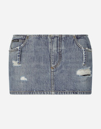 Denim mini skirt with rips: • Denim • Low rise • 5 pockets • Branded label on the coin pocket • The piece measures 45 cm from the waist down on a size IT 40 • Metal button with logo and zipper • The model is 175 cm tall and wears a size IT 40 • Made in Italy Care And Details External composition: 100% Cotton