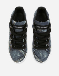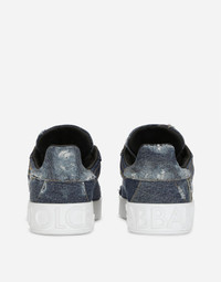 Patchwork denim Portofino sneakers: • Patchwork denim upper • Metal eyelets • Maxi-tubular laces • Branded tongue • Calfskin footbed with branded label • Rubber sole with branded spoiler • Branded rubber sole • Made in Italy Care And Details External composition: 98% Cotton 2% Spandex Internal composition: 80% Lambskin 10% Goatskin 7% Polyester 3% Natural Rubber
