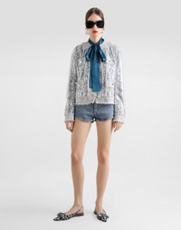 Dolce&Gabbana is conveying a new way of interpreting denim and does so by drawing inspiration from key words such as glamor and signature aesthetic, creating a collection that is perfect for every style and personality, merging femininity, modernity and originality. Cotton denim shorts: • Blue • High-waisted • 5 pockets • Branded label on the coin pocket • Branded metal and leather tag on the back pocket • Inner leg: cm • Hem: cm • Zipper and branded metal button fastening • The model is 175 cm tall and wears a size IT 40 • Made in Italy External composition: 98% Cotton 2% Spandex