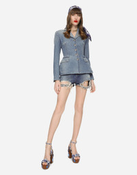 These comfortable, high-waisted shorts come in deep blue denim and represent a contemporary take on a great summer classic. The fringing and maxi-rips will add boldness to your looks: • High-waisted • Slant front pockets • Back patch pockets • Branded metal and leather plate • Inner leg: 4 cm • Curved hem: 31.8 cm • Zipper and branded metal button fastening • The model is 175 cm tall and wears a size IT 40 • Made in Italy Care And Details External composition: 100% Cotton