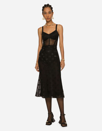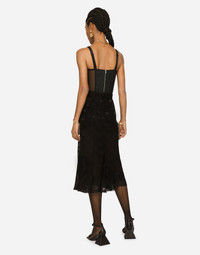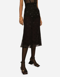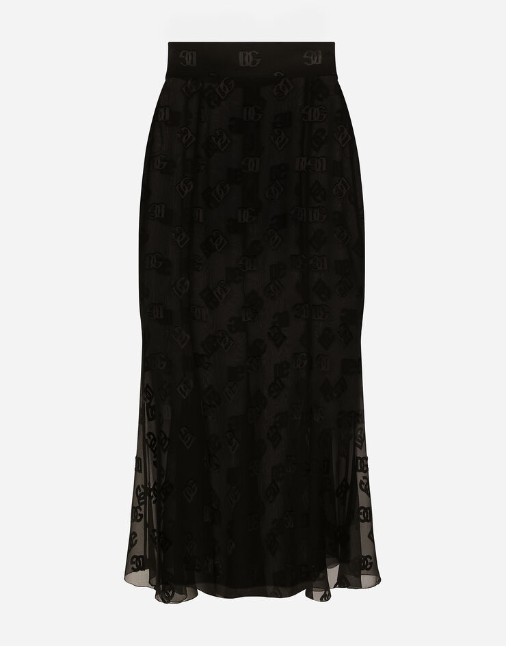 Devoré satin skirt with all-over DG logo