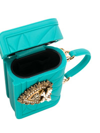 mini Devotion AirPods holder Highlights - Hopelessly devoted... to your airpods? keep them safe in this turquoise devotion airpods holder. courtesy of dolce & gabbana. featuring a quilted effect, a front logo plaque, an optional chain strap and a round top handle. Made in Italy Composition Silicone 100% SIZE & FIT Measurement DEPTH 1.18 in(3 cm) HEIGHT 2.16 in(5.5 cm) WIDTH 3.54 in(9 cm) STRAP 25.19 in(64 cm) HANDLE 1.18 in(3 cm)